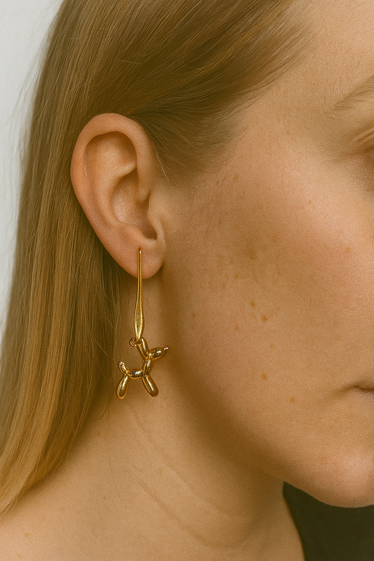 🎈 Goudkleurige oorhaken met ballonhond hanger – nikkelvrij Voeg een vleugje fun en originaliteit toe aan je look met deze goudkleurige oorhaken met ballonhond hanger! De speelse vorm van de...