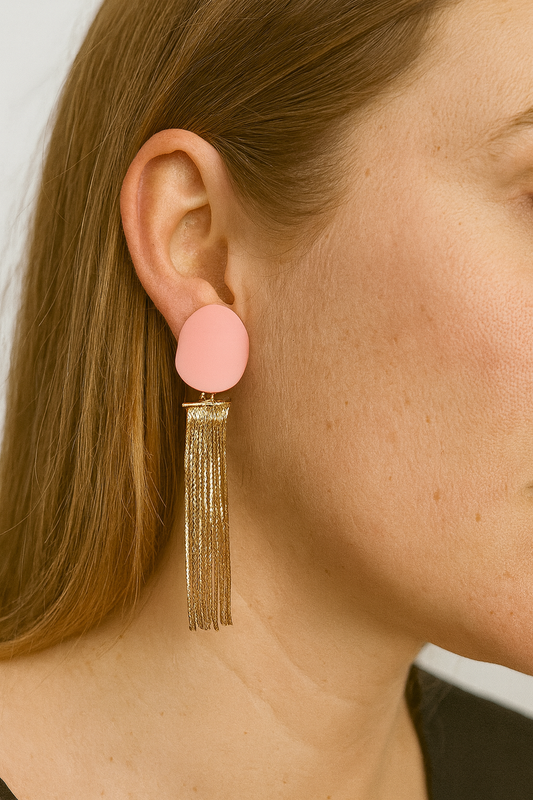 🌸 Roze ovalen oorbellen met goudkleurige kettingen Laat je look sprankelen met deze roze ovalen oorbellen met een elegant goudkleurige kettingen dat zachtjes meebeweegt bij elke stap. De combinatie van het...