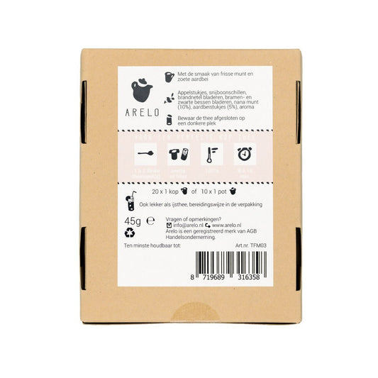 De frisse geur van munt en de zoete smaak van aardbei maken deze fruitmelange perfect voor het maken van een zomerse ijsthee!- Zomerse (ijs)thee- Gearomatiseerde mix met aardbei, munt en...