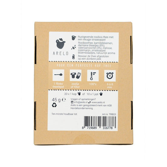 Rustgevende rooibos thee met kamille, valeriaan en een vleugje sinaasappel- Rustige thee- Bevat geen theïne/cafeïne- Met rustgevende ingrediënten zoals Kamille, en valeriaan- Een heerlijke thee voor het slapen gaan- Elke...
