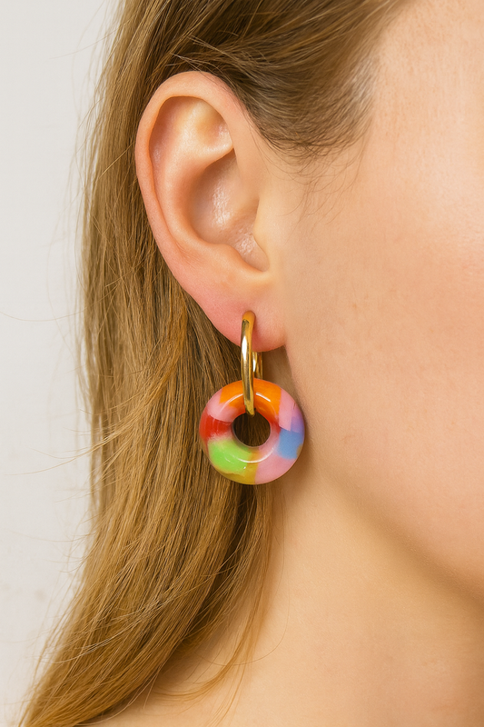 Stainless steel goudkleurige creolen met veelkleurige rondjes – 2 cm Breng kleur en speelsheid in je look met deze stainless steel goudkleurige creolen met vrolijke veelkleurige rondjes. Stijlvol, trendy en...