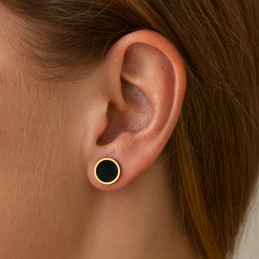 🖤 Goudkleurige oorstekers met zwarte ronde – 10 mm (chirurgisch roestvrij staal) Tijdloos en elegant — deze goudkleurige oorstekers met zwarte ronde van chirurgisch roestvrij staal voegen direct een vleugje klasse...