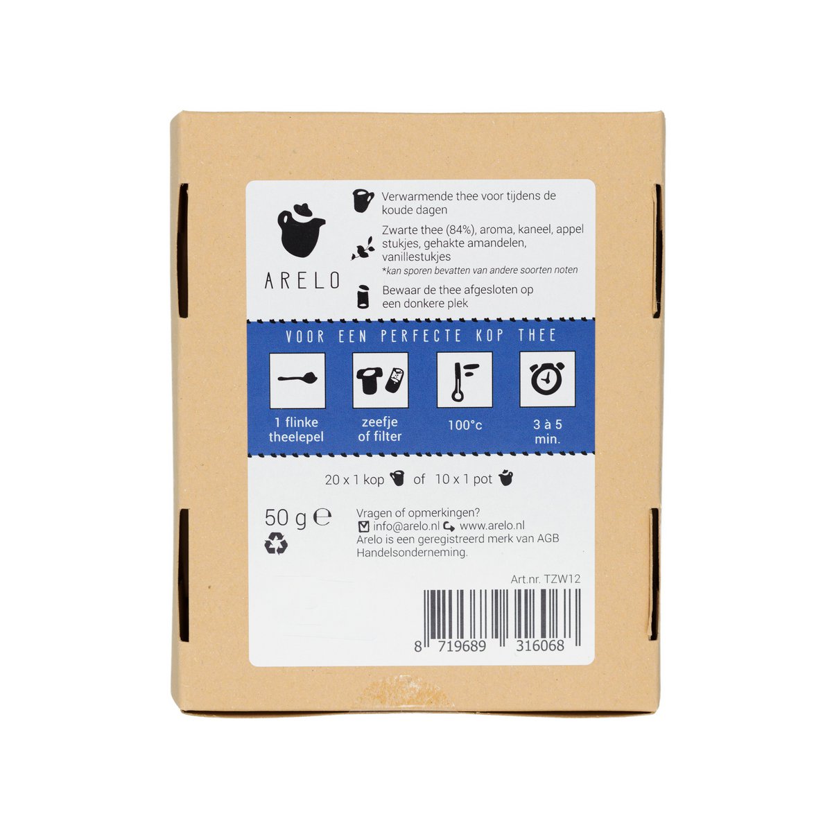 Zwarte thee (84%), aroma, kaneel, appel stukjes, gehakte amandelen, vanillestukjes